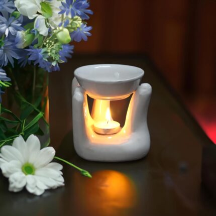 Ceramic Aroma Oil Diffuser with 2 Tealight Candles | Home Fragrance Burner for Meditation, Spa, Relaxation & Festival Gifting